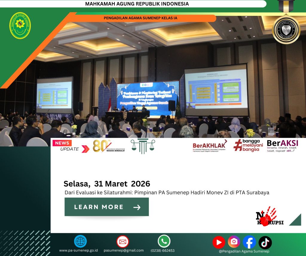 pa-sumenep.go.id – Pengadilan Agama (PA) Sumenep menunjukkan komitmennya dalam meningkatkan kualitas pelayanan publik dengan menghadiri kegiatan Monitoring dan Evaluasi (Monev) Zona Integritas (ZI) yang diselenggarakan di lingkungan PTA Surabaya. Acara ini berlangsung pada Selasa, 31 Maret 2026, di Kabupaten Gresik dengan suasana yang penuh semangat kolaborasi. Kehadiran PA Sumenep tidak hanya sebagai bentuk evaluasi kinerja, tetapi juga sebagai langkah mempererat hubungan kelembagaan.