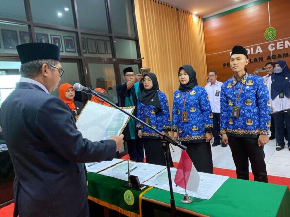 3 orang Calon Pegawai Negeri Sipil (CPNS) Pengadilan Agama Malang dilantik dan diambil sumpahnya sebagai Pegawai Negeri Sipil (PNS) pada Senin, 6 Maret 2023. Ketiga pegawai tersebut adalah Nurul Hikmah, A.Md. (Pengelola Perkara), Siti Damayanti Fitriana, A.Md. (Pengelola Perkara), dan Dani Widian Pradana A.Md (Pengelola Barang Milik Negara). Bertempat di ruang media center PA Malang, kegiatan yang berlangsung selama kurang lebih 1 jam tersebut berlangsung dengan khidmat. Acara diawali pembacaan doa oleh Bapak Drs. H. Usman Ismail Kilihu, S.H., M.H.